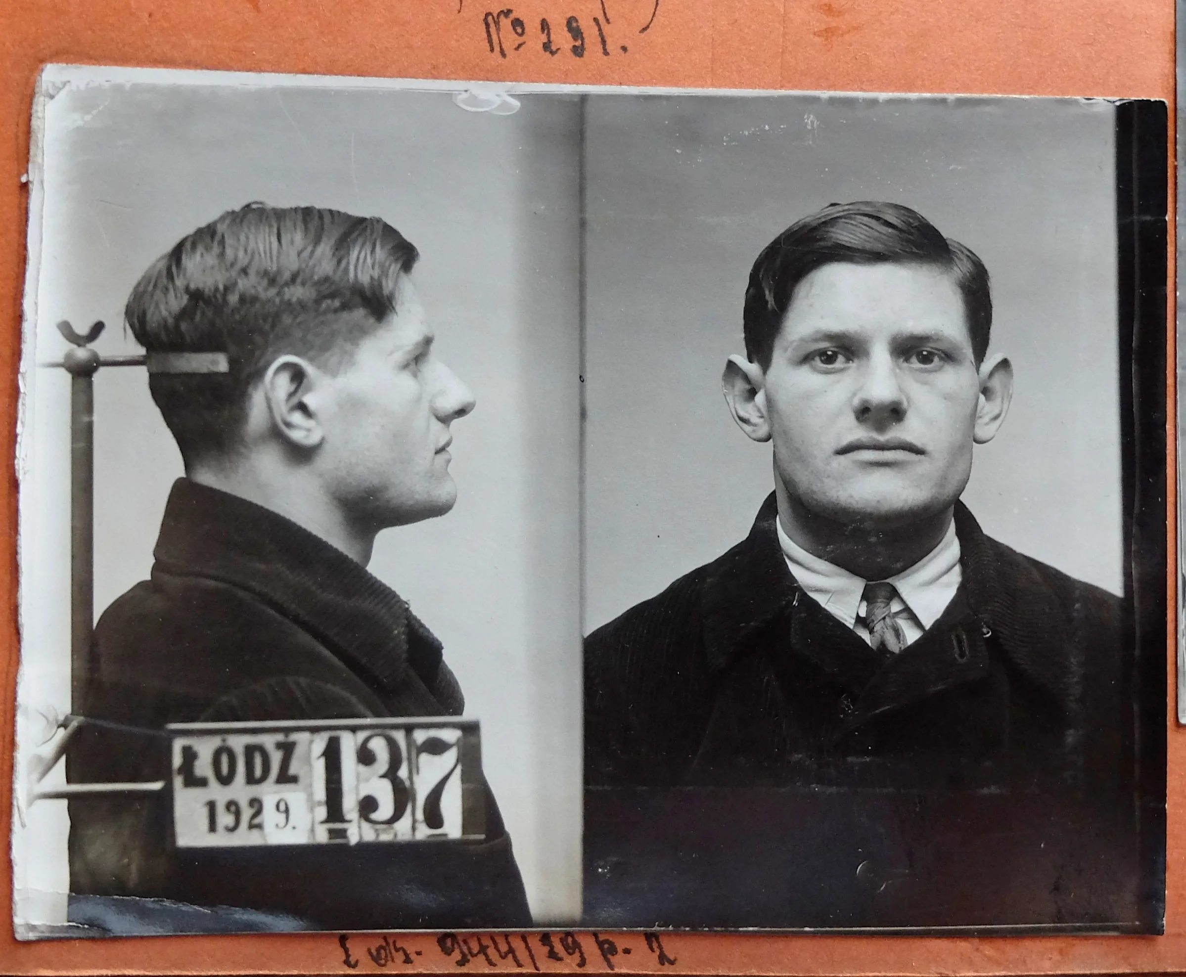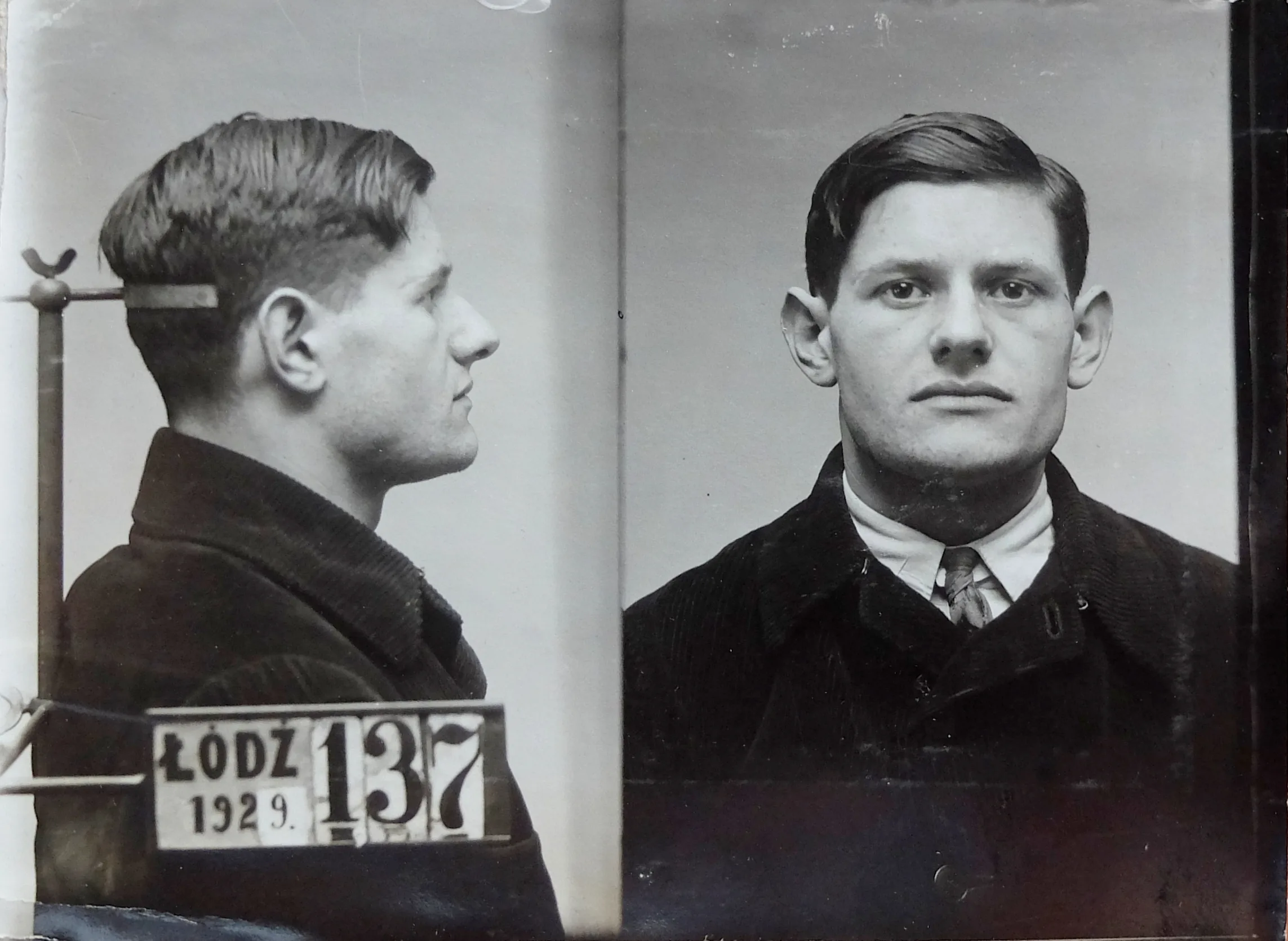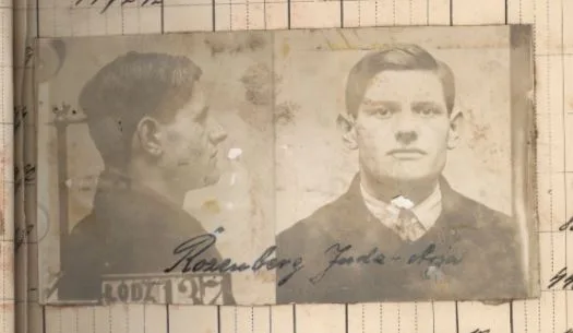 Juda Aria Rozenberg, ps. Lejbele (ur. ok. 1907) był przedwojennym komunistą. Już jako siedemnastolatek został skazany na 4 lata więzienia za działalność polityczną .Zdjęcie pochodzi z aresztowania w 23 lutego 1929 roku, kiedy to wpadł w Łodzi razem z Izaakiem Gordinem vel. Aleksandrem Lenowiczem (ur. ok. 1890), delegatem biura warszawskiego, który miał uśmierzyć konflikty wśród łódzkich komunistów (P-5249). Rozenberg, po wyjściu z więzienia pracujący jako inkasent w związku odzieżowym „Igła”, trudnił się agitacją wśród żydowskiej młodzieży robotniczej. Gordina uniewinniono z zarzutu o działalność komunistyczną (trzy tygodnie wcześniej z tego samego zarzutu uniewinnił go warszawski sąd apelacyjny) i dostał tylko 4 miesiące więzienia za używanie fałszywego dowodu osobistego, Rozenberga ponownie skazano na cztery lata. Dalszych jego losów nie znam.