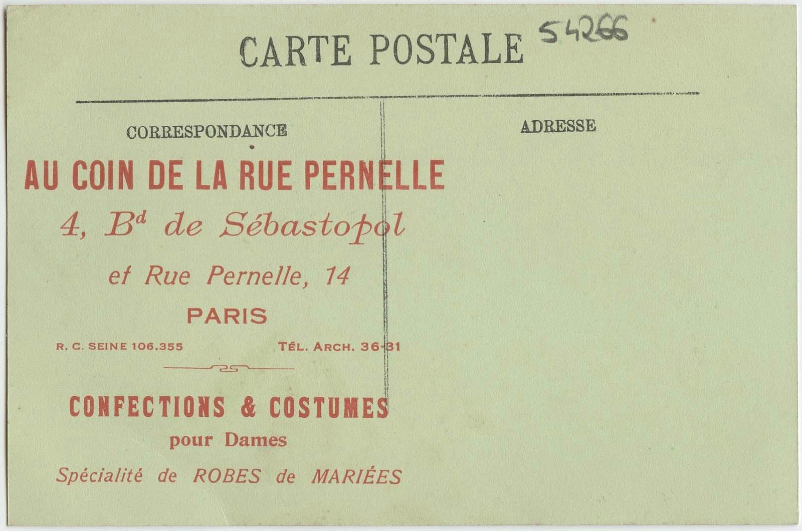 Na rewersie reklama sklepu z konfekcją, specjalizującego się w sukniach ślubnych,