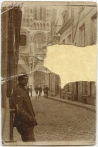 Żołnierz przed katedrą w Laonie