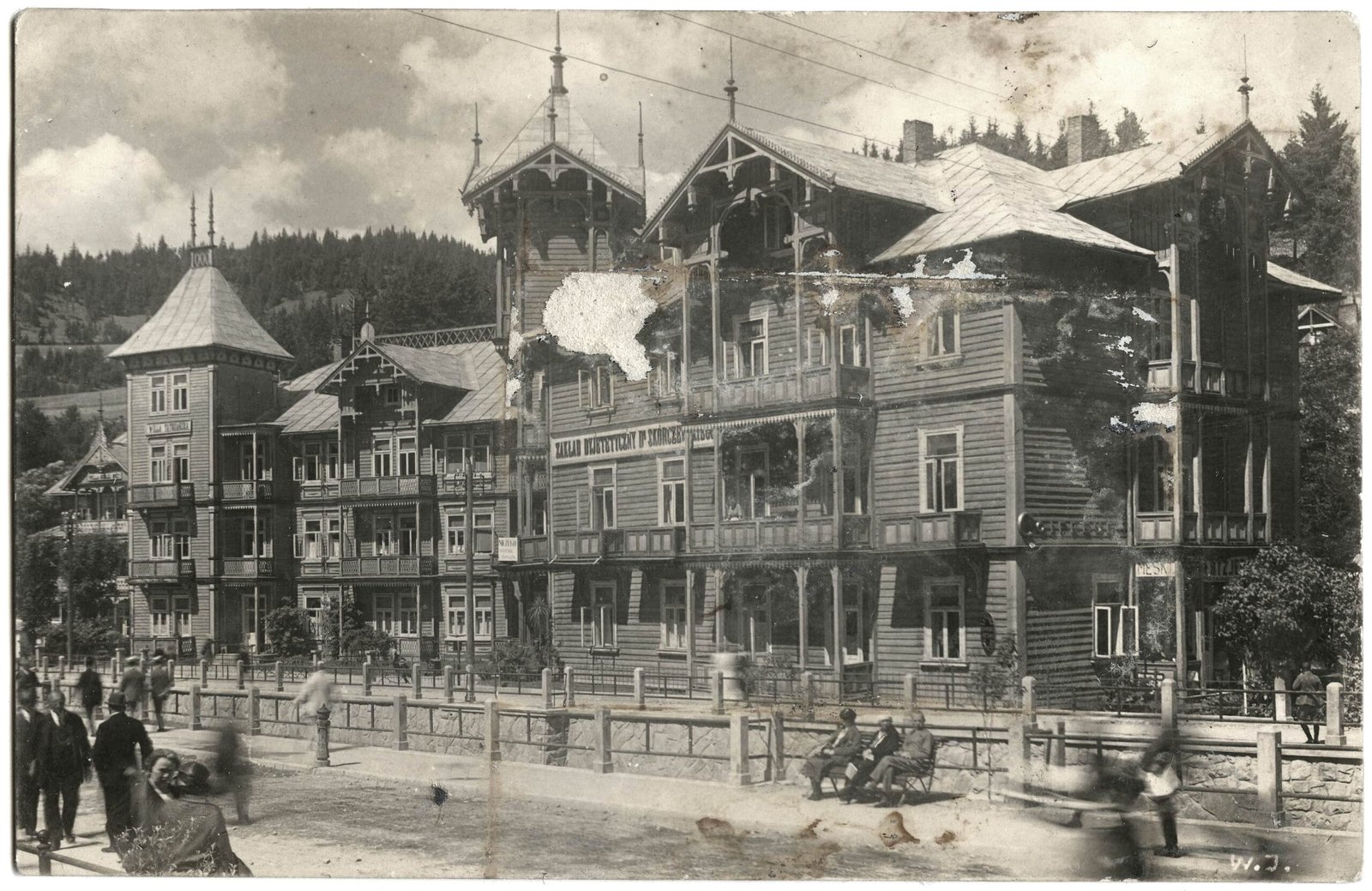 Po lewej willa „Tatrzańska” powstała jako pensjonat „Pod Lwem” w 1855, po prawej Zakład Djetetyczny Dra Skórczewskiego, zbudowany (w 1888) i prowadzony przez doktora Bolesława Skórczewskiego. Jego syn Witold (chyba stąd budynek jest nazywany „Witoldówką”) z czasem zajął również „Tatrzańską”, która spłonęła w 1987 roku, ale została odbudowana od zera w latach 2019-2021. Witoldówka została natomiast rozebrana i złożona na nowo w latach 90. XIX wieku.