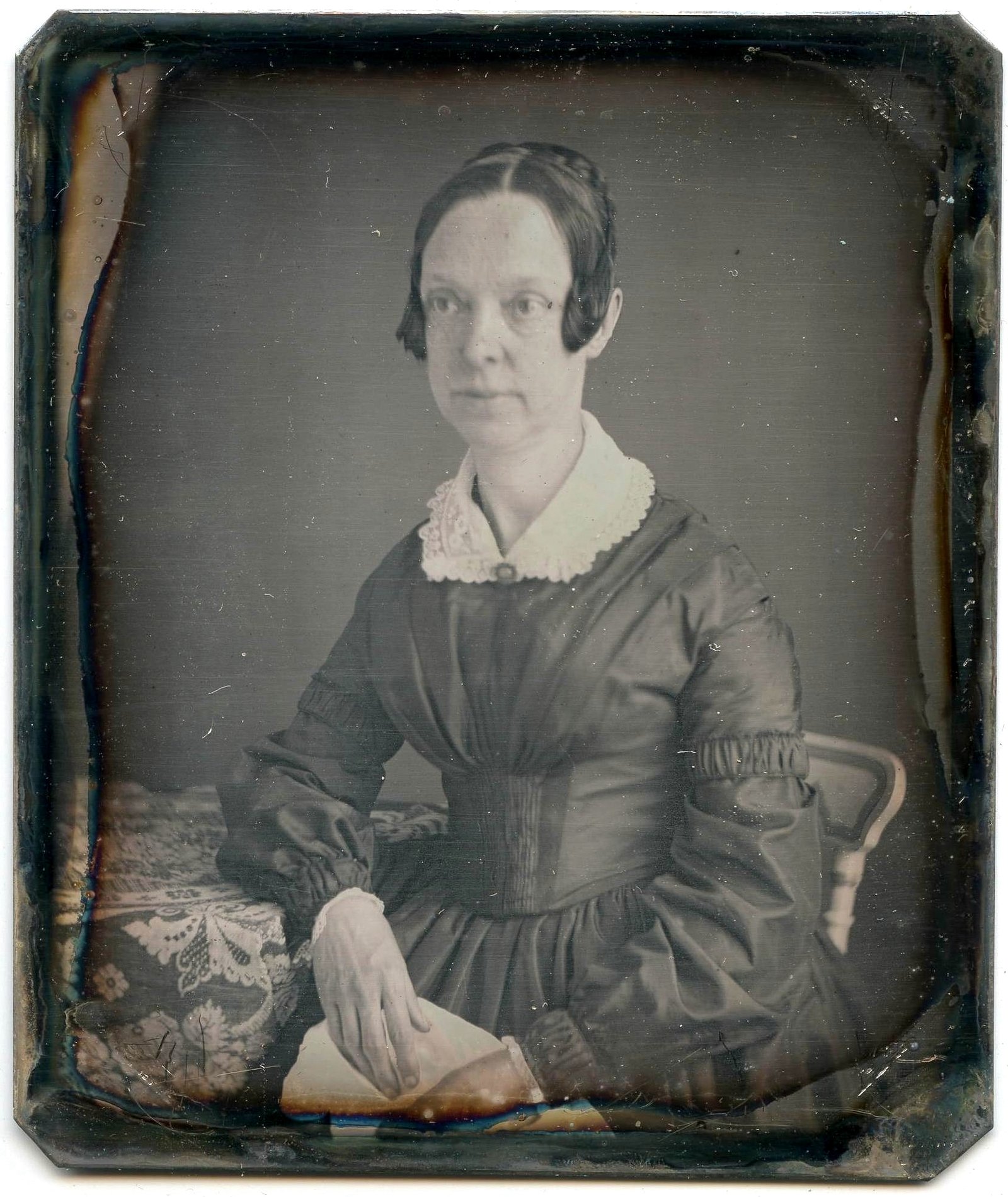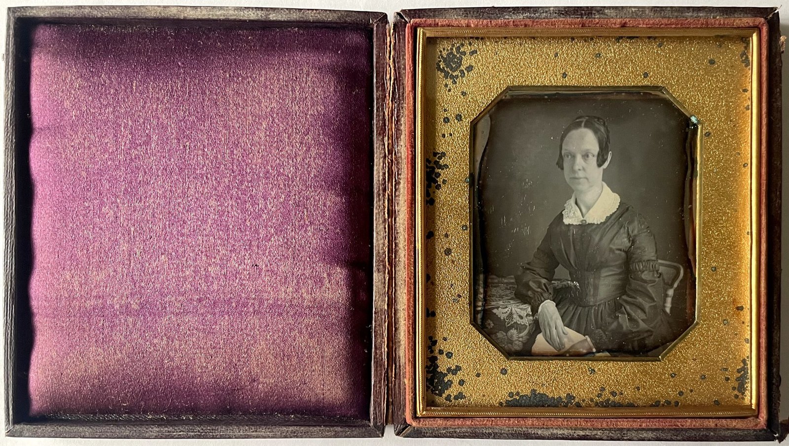 Dagerotyp 1/6 płyty w niestandardowo większej oprawie niż 1/4 płyty (10,5×12 cm).
