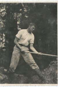 Zygmunt Karpiński (?) zbiera grzyby
