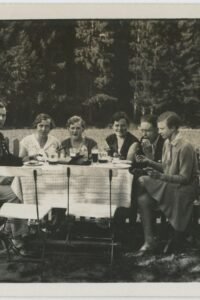 Julia i Józef Karpińscy z dziećmi, guwernantką i znajomym